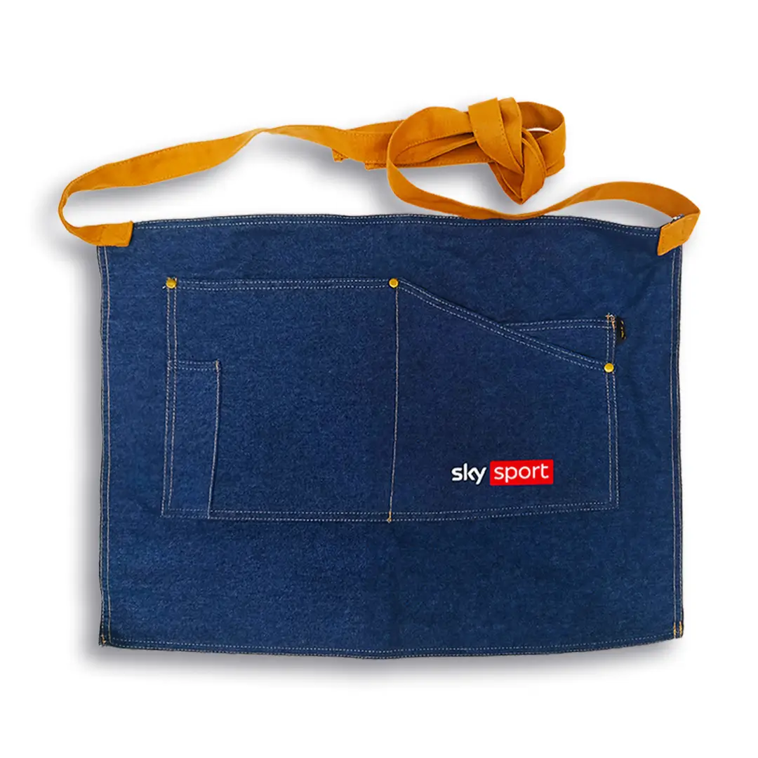 Grembiule per il personale pensato per un’immagine coordinata che valorizza la presenza di Sky Sport nel tuo locale.